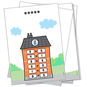 Låt eleverna träna på talkamrater för talen 3–10 med hjälp av talhus. Till vänster om husen delar eleven upp talet genom att färglägga rutorna. Sedan skrivs rätt talkamrat i husets fönster.